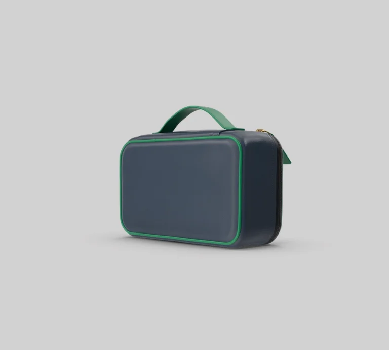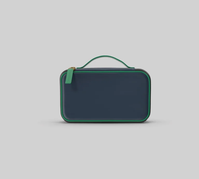 The Travel Pouch provides compact storage with a secure zip closure and easy-to-carry handle, perfect for organizing essentials.
